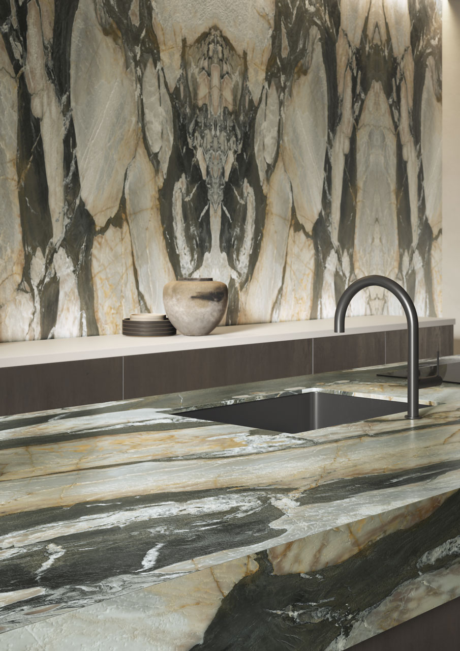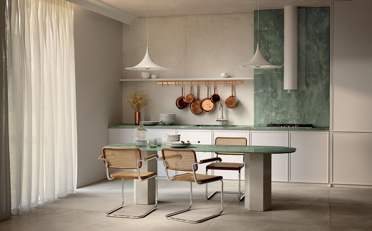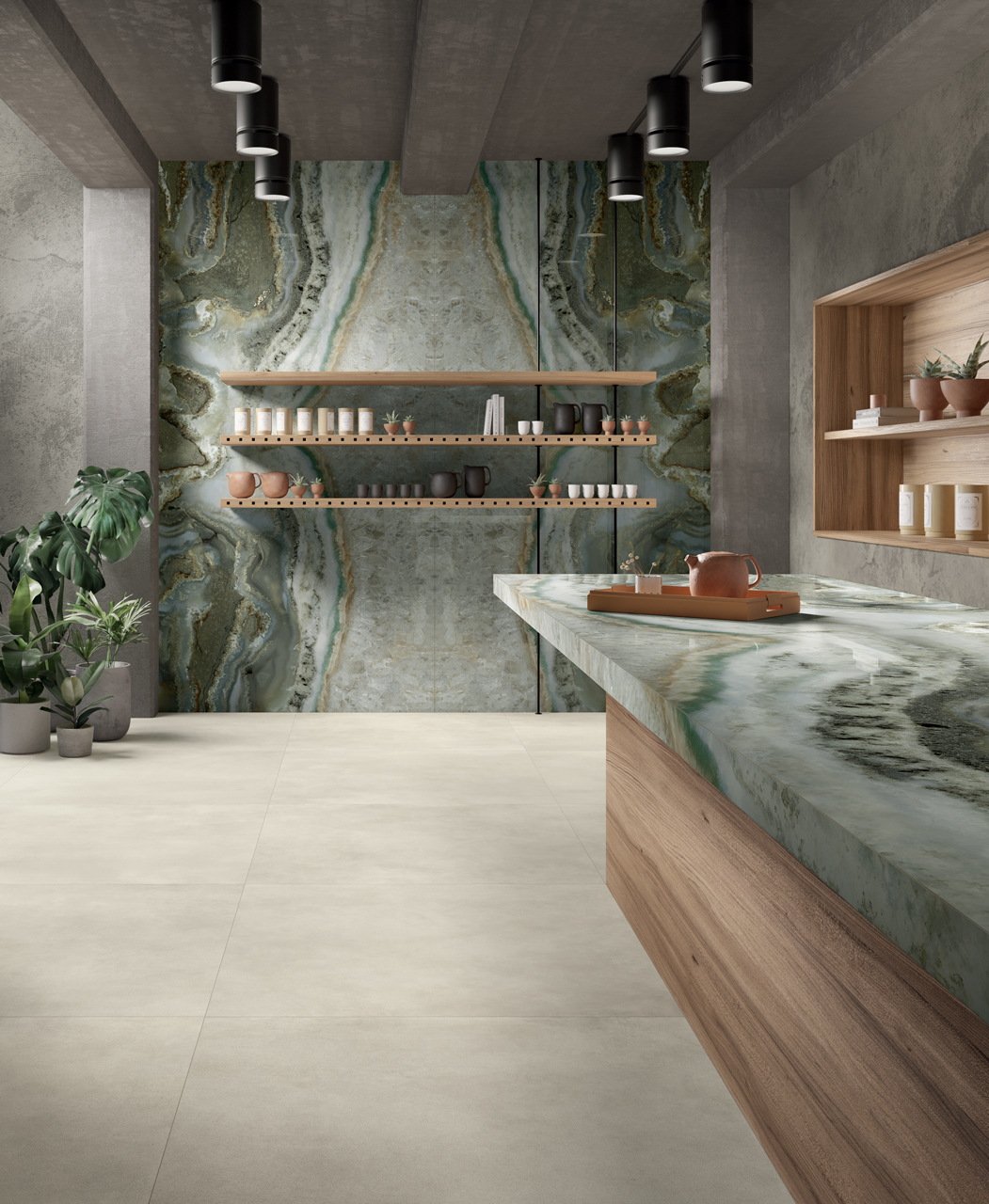 Τα πυροσυσσωματωμένα κεραμικά είναι υψηλής τεχνολογίας πλάκες πορσελάνης. Η σύσταση των κεραμικών επιφανειών αποτελείται από άργιλο, χαλαζία και πούδρα φυσικού υάλου. Διατίθενται σε μεγάλη ποικιλία χρωμάτων και υφών. Μοναδικά υλικά, υψηλής αισθητικής σχεδιασμένα και κατασκευασμένα στην Ιταλία. Επιφάνειες που εξασφαλίζουν ομοιομορφία και άψογα τεχνικά χαρακτηριστικά σε μια ευρεία γκάμα χρωματικών επιλογών.